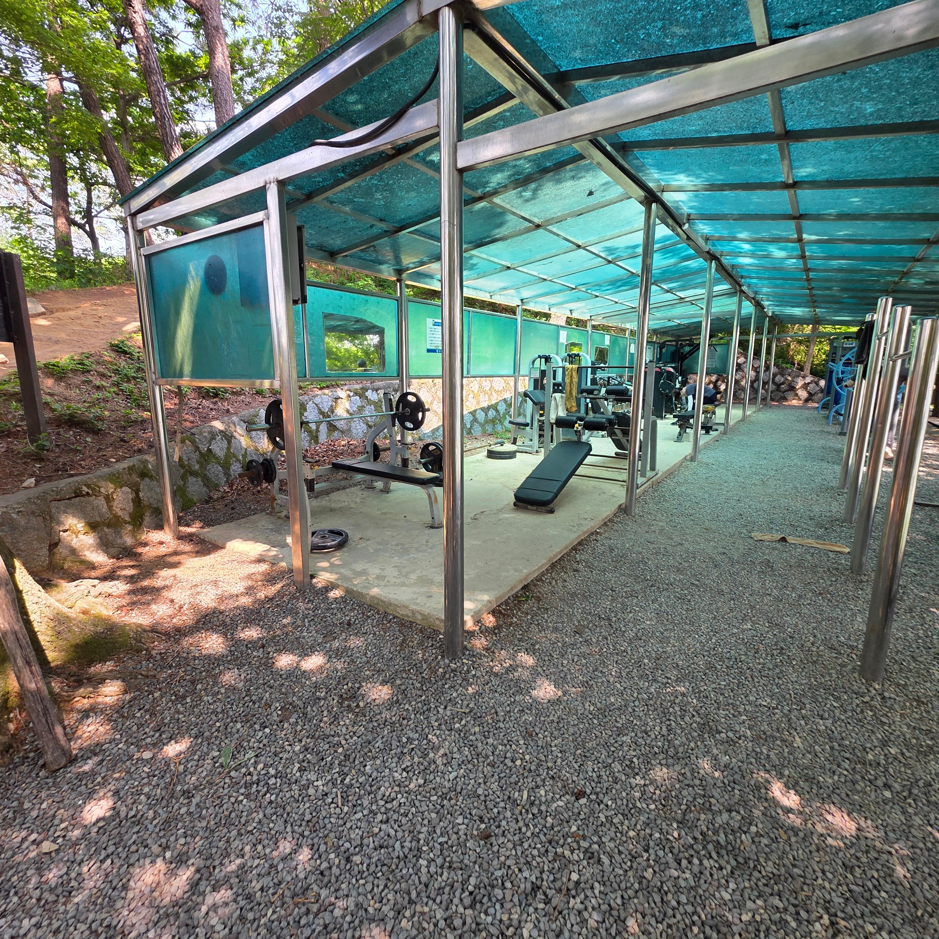 조금 걸어 내려왓더니 ㅋㅋ 산에 헬스장이 .....