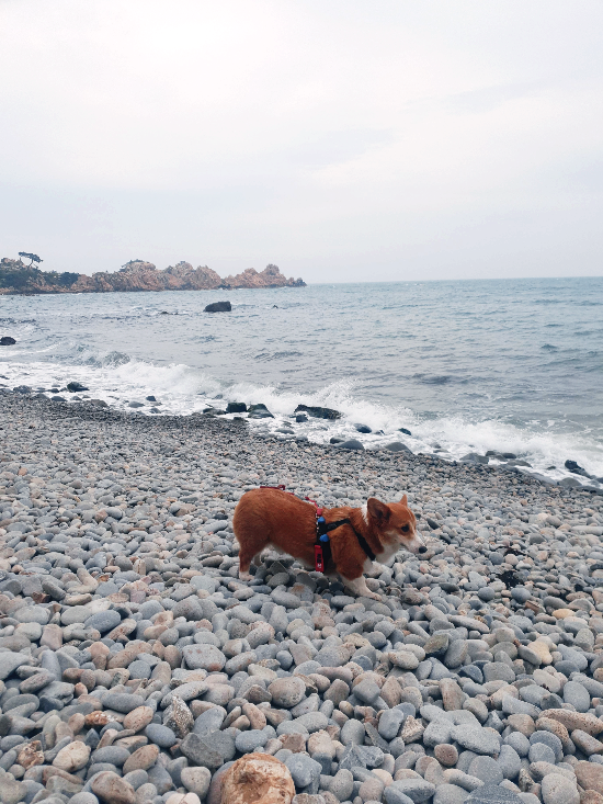 바다에 내려가서 자갈마당에서 조금 뛰어놀다가~