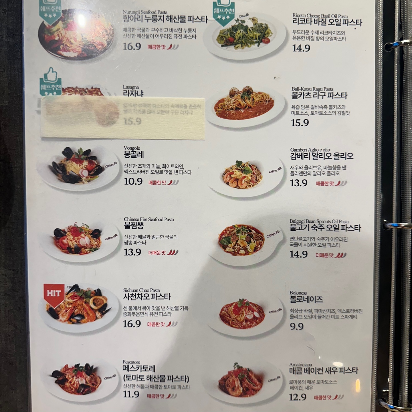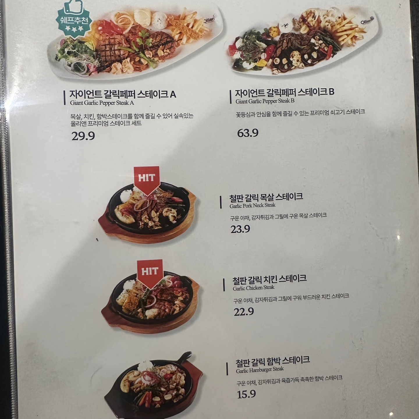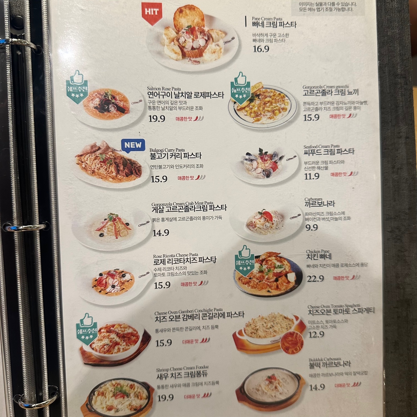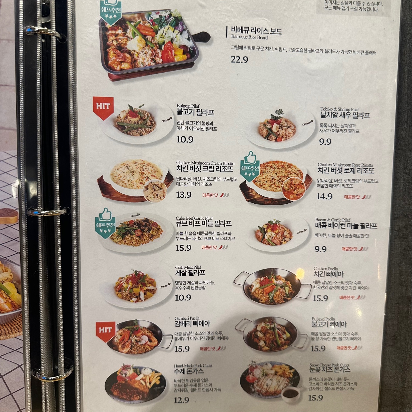 올리앤 김해점 메뉴가 엄청 많아요....