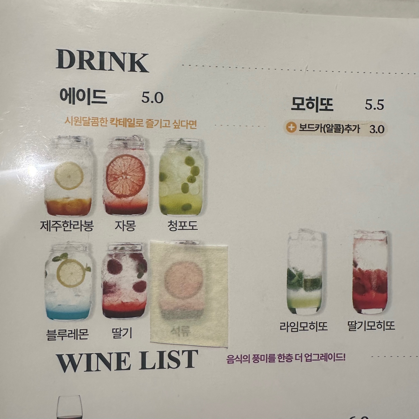 저희는 예약하면서 무료로 에이드를 받아서 따로