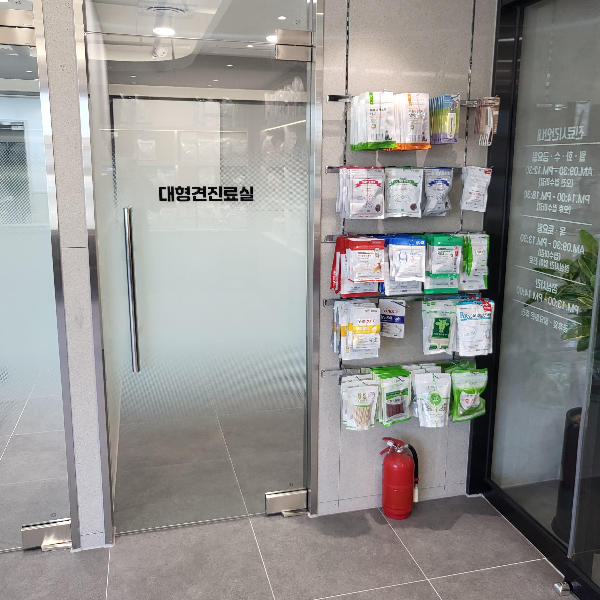 대형견 진료실이 따로 있고 앞에는 영양간식들이 있어 ~